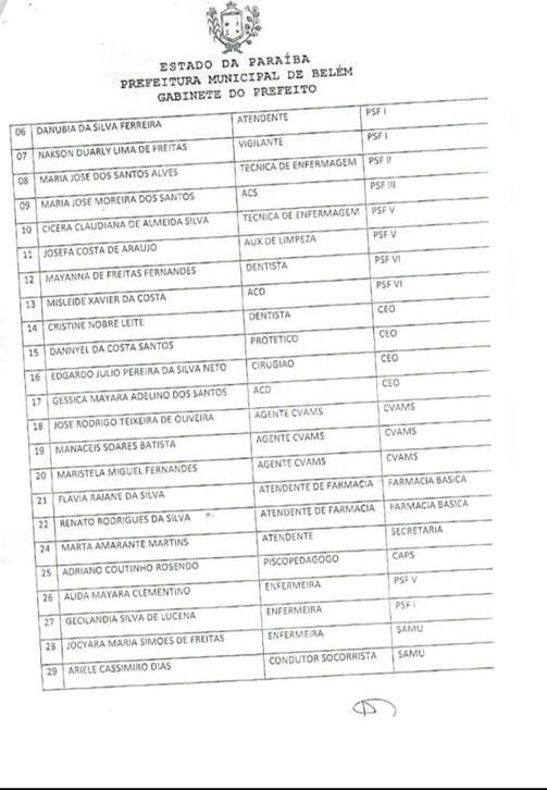 do município uma lista contendo 95 nomes de servidores públicos contratados da