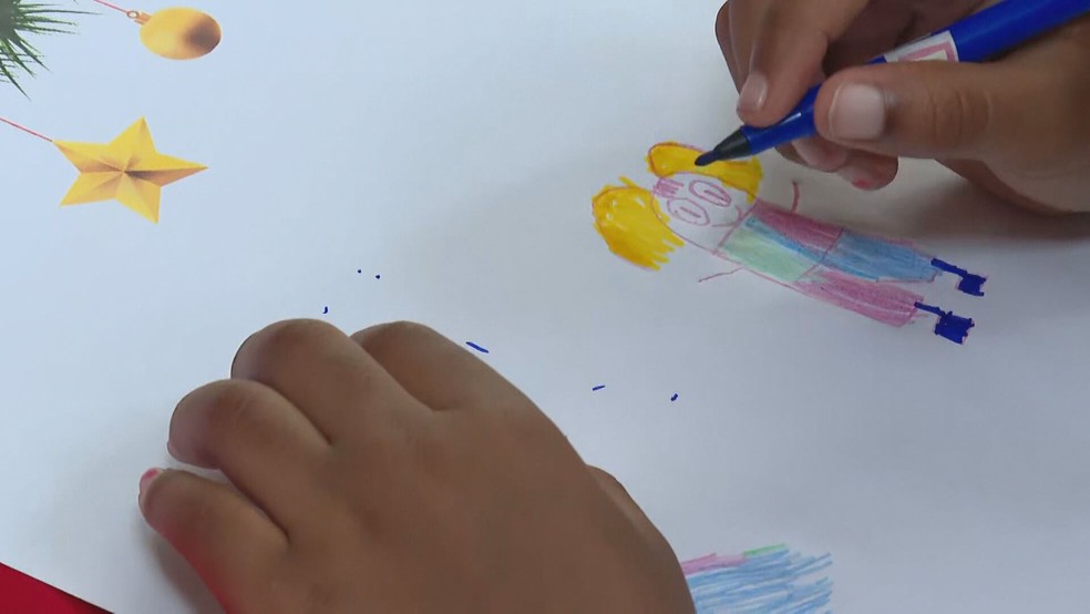 | Detalhe de desenho de criança enviado para a campanha Papai Noel dos Correios. — Foto: Reprodução/ TV Globo |